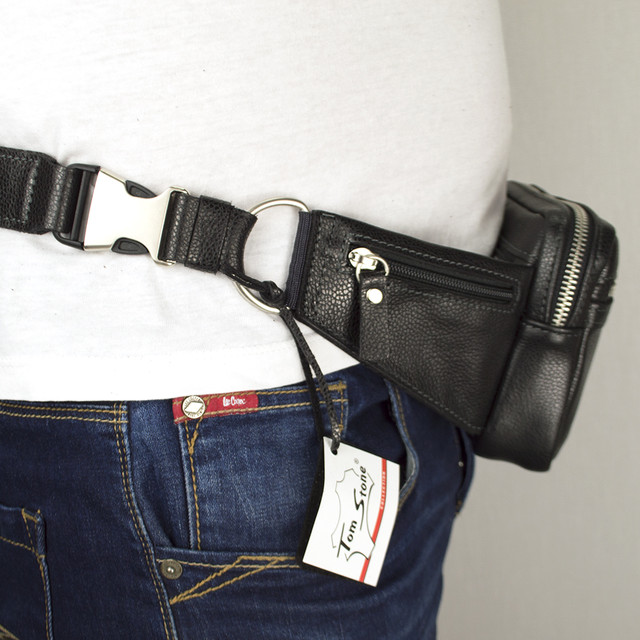 Сумка поясна шкіряна бананка Tom Stone 121 B чорна