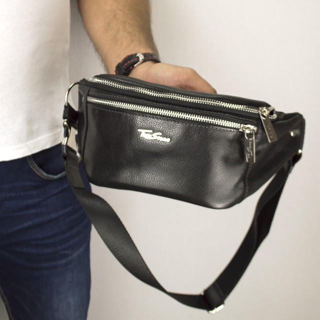 Сумка-бананка поясна шкіряна Tom Stone 122 B чорна