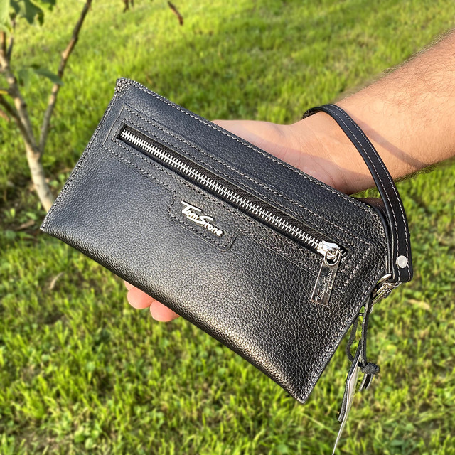 Шкіряний клатч - незамінний атрибут для кожного чоловіка. Барсетка дозволяє вмістити багато необхідних і корисних речей, які супроводжують кожного чоловіка щодня: гроші, документи, ключі. Розмір виробу дозволяє розмістити гаджет розміром до 6,5" включно. Клатч оснащений якісними металевими блискавками YKK (Японія) та фірмовою якісною матовою фурнітурою стального кольору.