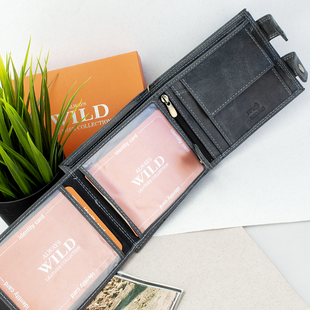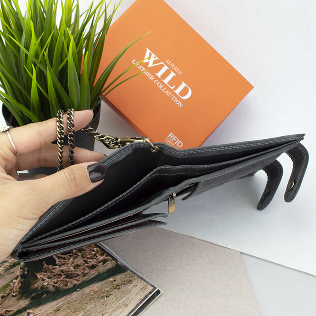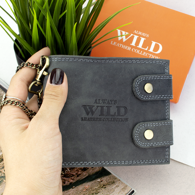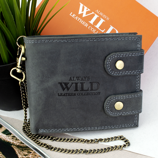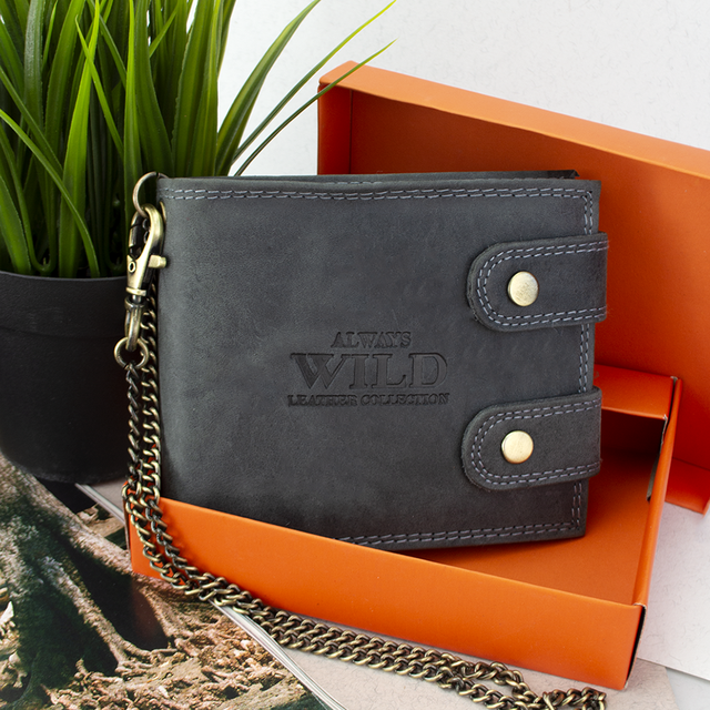 Чоловіче шкіряне портмоне Always Wild 2900-BIC чорне на кнопках з ланцюжком