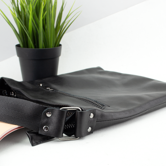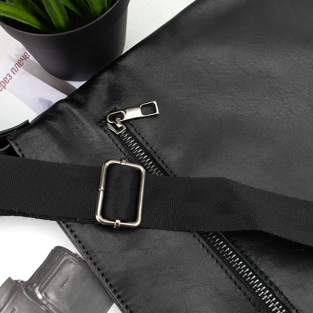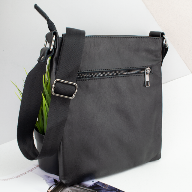 Базова чорна сумка із натуральної гладенької шкіри стане незамінним аксесуаром у повсякденному житті для кожного чоловіка. Якісне пошиття та фурнітура забезпечать її зносостійкість.