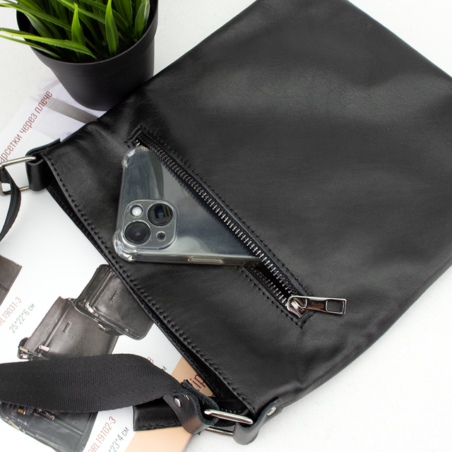Сумка чоловіча шкіряна Handycover S240 чорна без кишень на блискавці