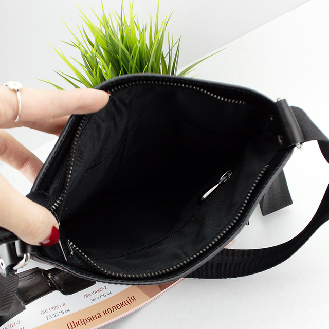 Сумка виконана у стриманому класичному стилі, без зовнішніх кишень, нашивок та логотипів. На задній стороні сумки - 1 глибока кишеня на блискавці. Сумка має одне основне відділення на блискавці. У ньому – 1 кишеня для телефону або павербанку на блискавці. Також є кишненя на блискавці на задній стороні сумки.