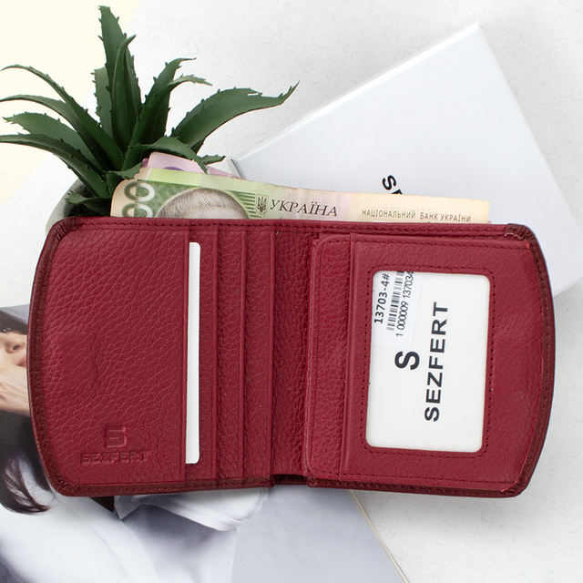 Жіночий шкіряний гаманець бордовий Sezfert 13703-4 маленький