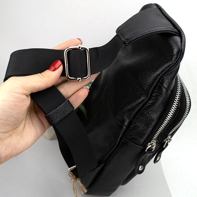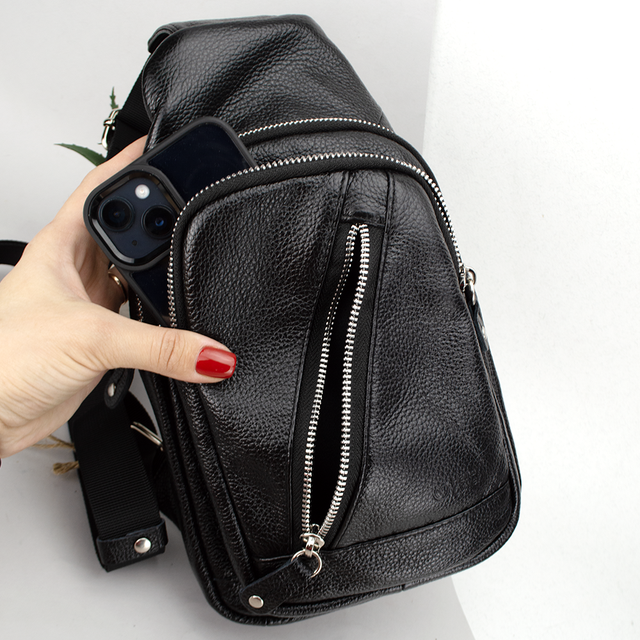 Ця сумка-слінг забезпечує ідеальний баланс між функціональністю та естетикою. Виготовлена з натуральної шкіри, вона надає вашому образу розкішного вигляду, зберігаючи при цьому свою міцність і довговічність. З двома просторими основними відділеннями та однією маленькою кишенею (для ключів, перепустки), ця сумка ідеально підходить для зберігання ваших речей у порядку. Зручний дизайн дозволяє носити її на плечі, забезпечуючи легкий доступ до всіх необхідних речей у русі. Телефон можна розмістити у середній кишені на блискавці або у внутрішній кишені великого відділення. Підкладка із якісного текстилю. Усі блискавки металеві. Регульований плечовий ремінь із якісного текстилю, ширина 30 мм. Додайте стилю у своє повсякденне життя з цим елегантним чоловічим рюкзаком-слінгом. Виберіть якість і функціональність — виберіть чорний шкіряний аксесуар для стильного повсякденного образу.