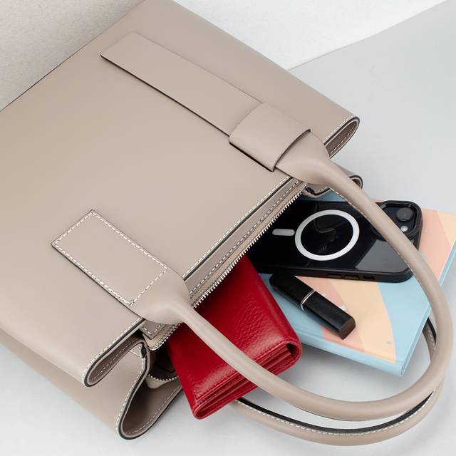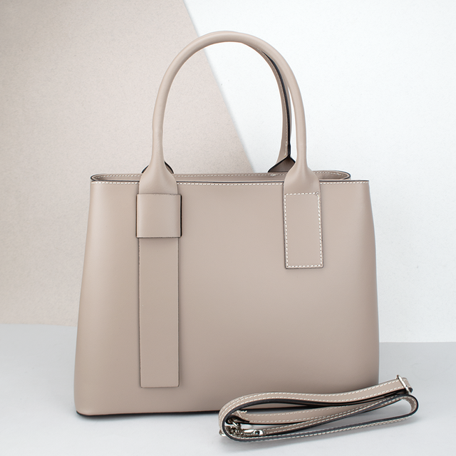 Ця жіноча сумка вишуканого бежевого кольору поєднує в собі елегантність і практичність. Виготовлена з натуральної шкіри, вона не лише довговічна, але й виглядає стильно та сучасно. Лаконічний мінімалістичний дизайн дозволяє носити її як з повсякденними образами, так і з діловими чи вечірніми нарядами. Зручні ручки доповнені знімним плечовим ременем, що додає універсальності у використанні.