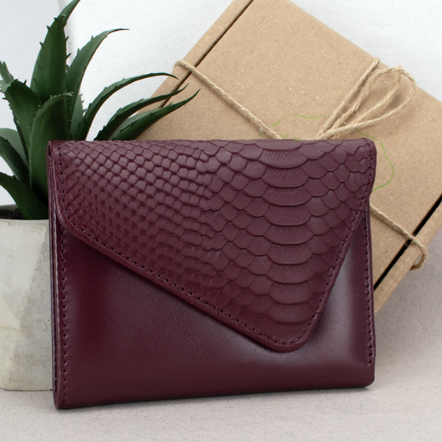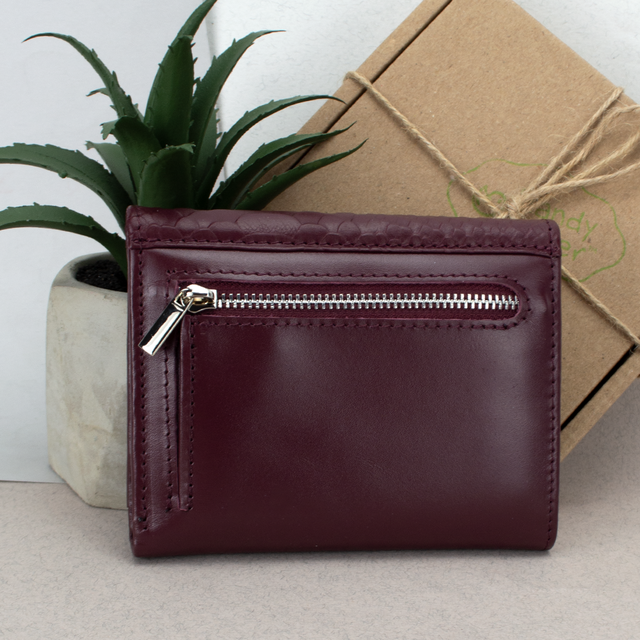 Привабливий жіночий подарунковий набір №90 - чудовий спосіб порадувати особливу жінку у вашому житті. У складі набору компактний та зручний гаманець Sabrina, обкладинка на паспорт та ключниця, виготовлені з натуральної шкіри з тисненням під бордового пітона. Ці аксесуари додадуть неповторний шик повсякденним речам і додадуть подорожам ще більшого стилю. Маленький жіночий шкіряний гаманець Sabrina поєднує в собі елегантність та практичність. Незалежно від його компактних розмірів, гаманець забезпечує неймовірну кількість функціональних можливостей. Розмір 12,5*10*2 см. Обкладинка на паспорт підкреслить індивідуальність та захистить ваші документи.