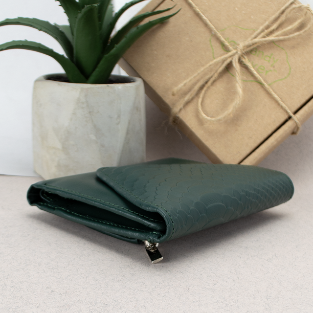 Привабливий жіночий подарунковий набір №90 - чудовий спосіб порадувати особливу жінку у вашому житті. У складі набору компактний та зручний гаманець Sabrina, обкладинка на паспорт та ключниця, виготовлені з натуральної шкіри з тисненням під зеленого пітона. Ці аксесуари додадуть неповторний шик повсякденним речам і додадуть подорожам ще більшого стилю. Маленький жіночий шкіряний гаманець Sabrina поєднує в собі елегантність та практичність. Незалежно від його компактних розмірів, гаманець забезпечує неймовірну кількість функціональних можливостей. Розмір 12,5*10*2 см. Обкладинка на паспорт підкреслить індивідуальність та захистить ваші документи.