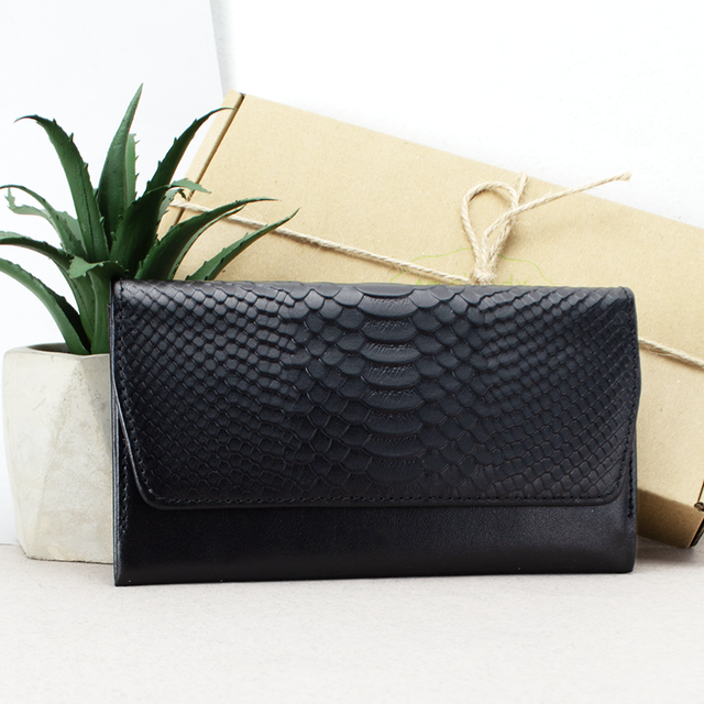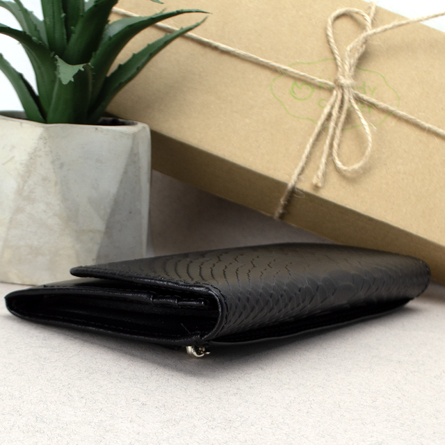 Подарунковий жіночий набір №91: гаманець Leona + обкладинка на паспорт (чорний пітон)