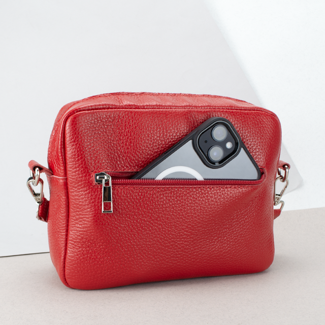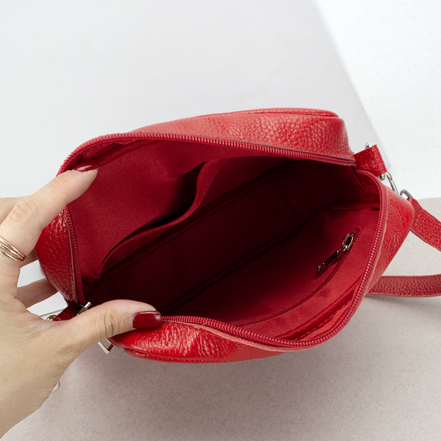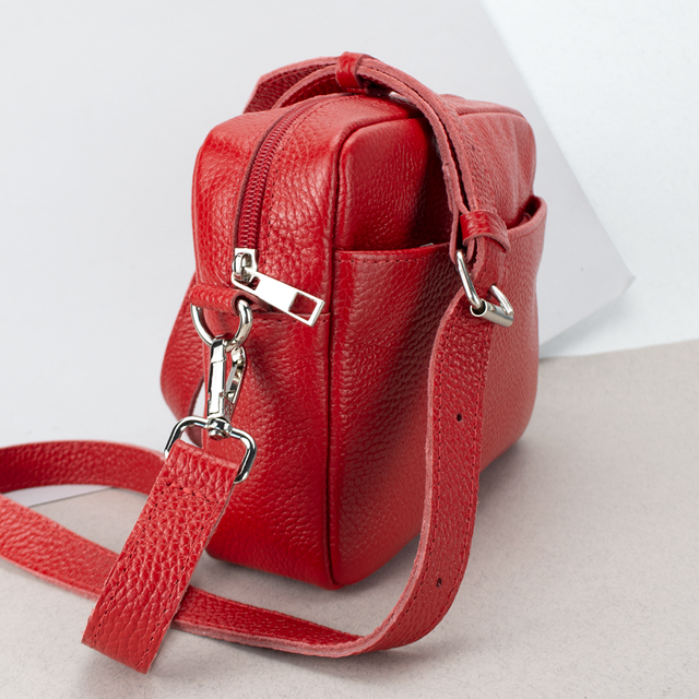 Компактна жіноча шкіряна кроссбоді сумка Handycover S460 в червоному кольорі. Цей стильний аксесуар виготовлений із високоякісної натуральної шкіри флотар, забезпечуючи довговічність та вишуканий зовнішній вигляд. Сумка має міцну блискавку, яка гарантує безпечне зберігання ваших речей. На лицьовій та зворотній стороні є кишеня на блискавці для зручного доступу до найнеобхідніших предметів. Всередині сумки текстильна підкладка, є прихована кишеня на блискавці та кишеня для телефону. Це дозволяє легко і компактно організувати вміст сумки. Крім того, сумка оснащена шкіряним ремінцем, що знімається, з регулюванням довжини, що дозволяє носити її як через плече, так і на плечі. За бажання ремінець можна замінити на текстильний для різноманітності створення нових образів.