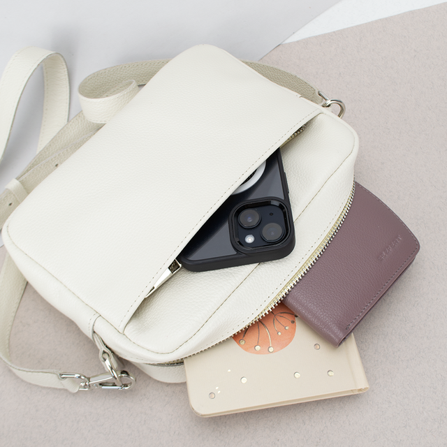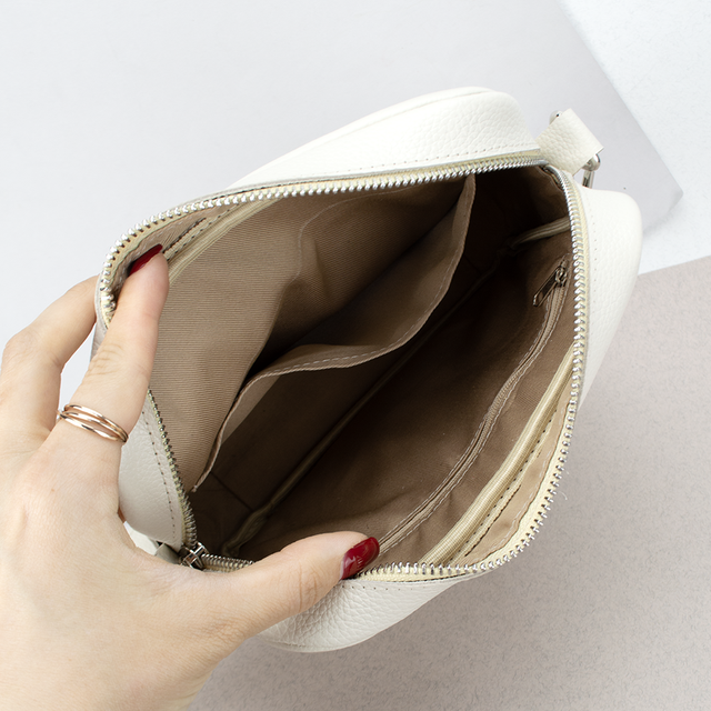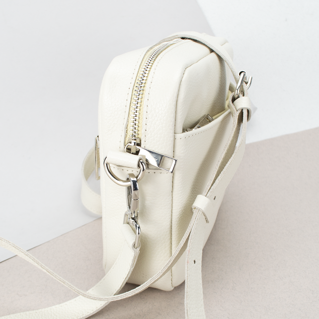 Компактна жіноча шкіряна кроссбоді сумка Handycover S440 в бежевому кольорі. Цей стильний аксесуар виготовлений із високоякісної натуральної шкіри флотар, забезпечуючи довговічність та вишуканий зовнішній вигляд. Сумка має міцну металеву блискавку, яка гарантує безпечне зберігання ваших речей. На лицьовій та зворотній стороні є кишеня на блискавці для зручного доступу до найнеобхідніших предметів. Всередині сумки текстильна підкладка, є прихована кишеня на блискавці та кишеня для телефону. Це дозволяє легко і компактно організувати вміст сумки. Крім того, сумка оснащена шкіряним ремінцем, що знімається, з регулюванням довжини, що дозволяє носити її як через плече, так і на плечі. За бажання ремінець можна замінити на текстильний для різноманітності створення нових образів.