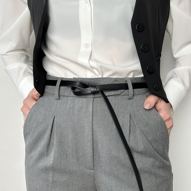 Шкіряний жіночий ремінь-вузол - стильний та універсальний аксесуар, виготовлений з високоякісної натуральної шкіри. Його можна носити з сукнею, брюками або светром, а різні способи зав'язування додають оригінальності вашому образу.