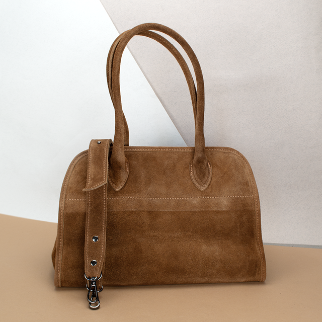 Сумка оснащена двома міцними і зручними ручками, а також довгим знімним ремінцем, що дозволяє комфортно носити її як в руках, так і на плечі. Основне відділення досить просторе та доповнене м'якою тканинною підкладкою, що не лише додає естетики, а й захищає ваші речі від пошкоджень. Завдяки місткому внутрішньому простору сумка легко вміщує все необхідне - гаманець, телефон, блокнот, ключі, косметику, воду, парасольку.