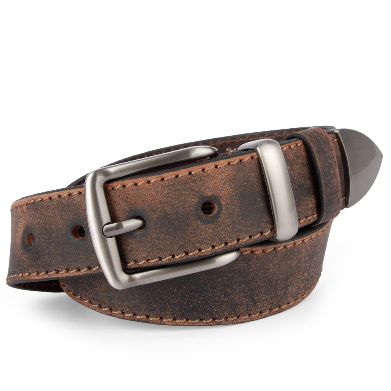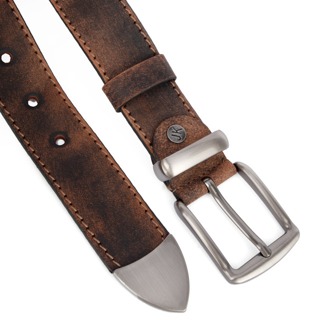 Ремінь чоловічий шкіряний JK-4006 коричневий потертий під джинси (125 см)