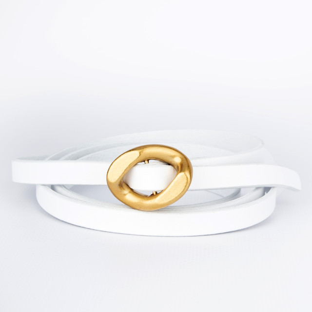 Білий жіночий ремінь з натуральної шкіри — елегантний аксесуар, що ідеально доповнить сукню, сарафан або піджак. Модель виготовлена з гладкої шкіри білого кольору, яка приємна на дотик і добре тримає форму. Завдяки універсальній ширині 1 см ремінь підходить для підкреслення талії, створюючи витончений силует як у повсякденному, так і у святковому образі.