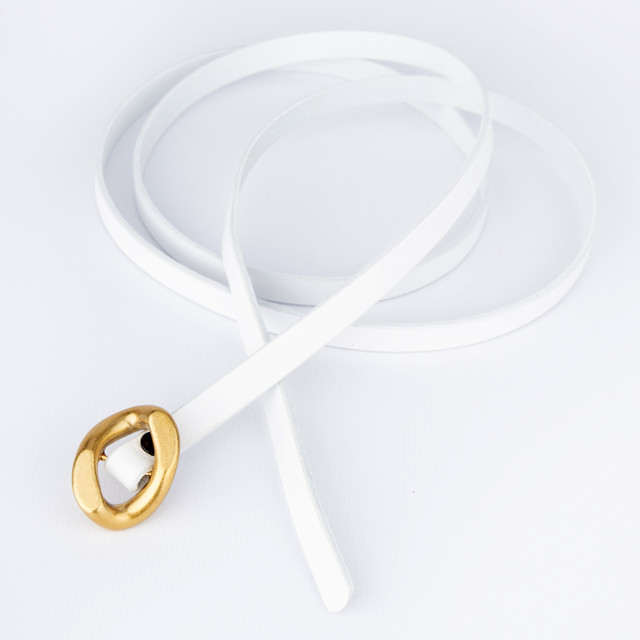 Ремінь жіночий шкіряний вузький білий HC-1001 (125 см) під сукню