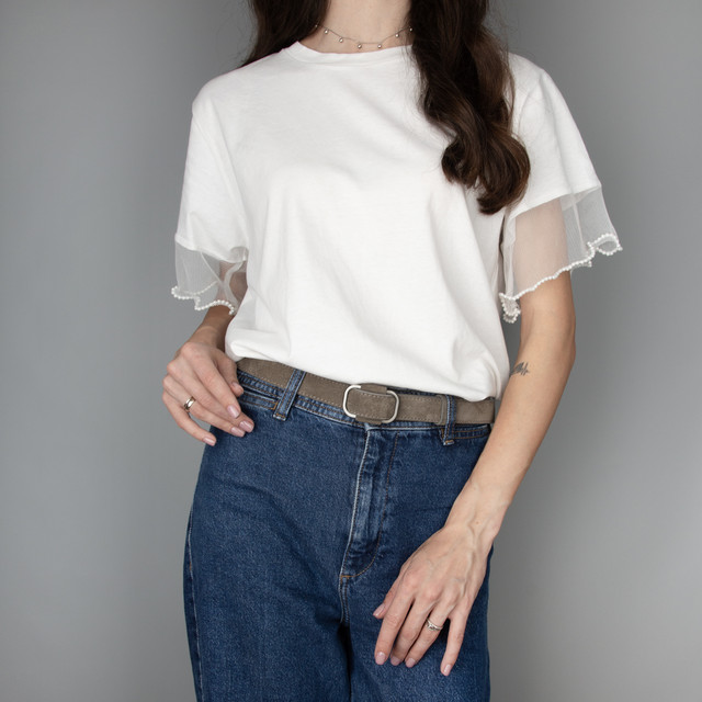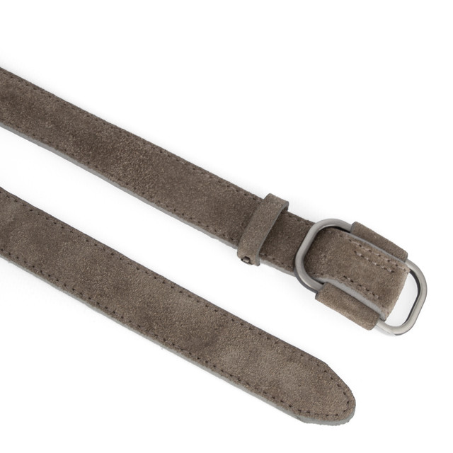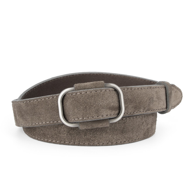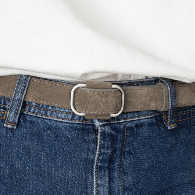 Ремінь оснащений лаконічною пряжкою у формі прямокутника із заокругленими краями, виготовленою з металу сріблястого кольору. Ця фурнітура додає виробу сучасного характеру, створюючи стильний акцент у поєднанні з м’якою поверхнею замші.