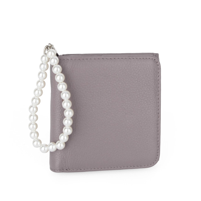 Жіночий маленький гаманець сіро-бузкового кольору з натуральної шкіри флотар — елегантний і практичний аксесуар для щоденного використання. Завдяки компактному розміру він зручно лежить у руці, легко поміщається навіть у мініатюрну сумочку та виглядає стильно в будь-якому образі. Прикраса у вигляді перлин додає гаманцю вишуканого й жіночного акценту.